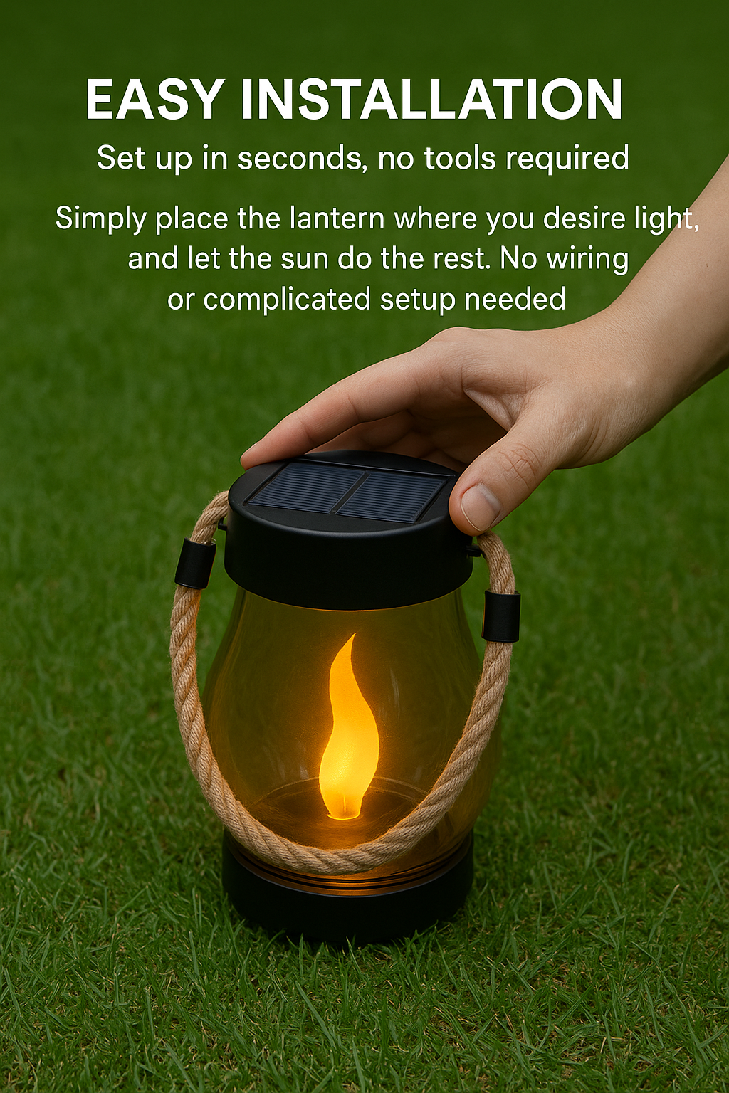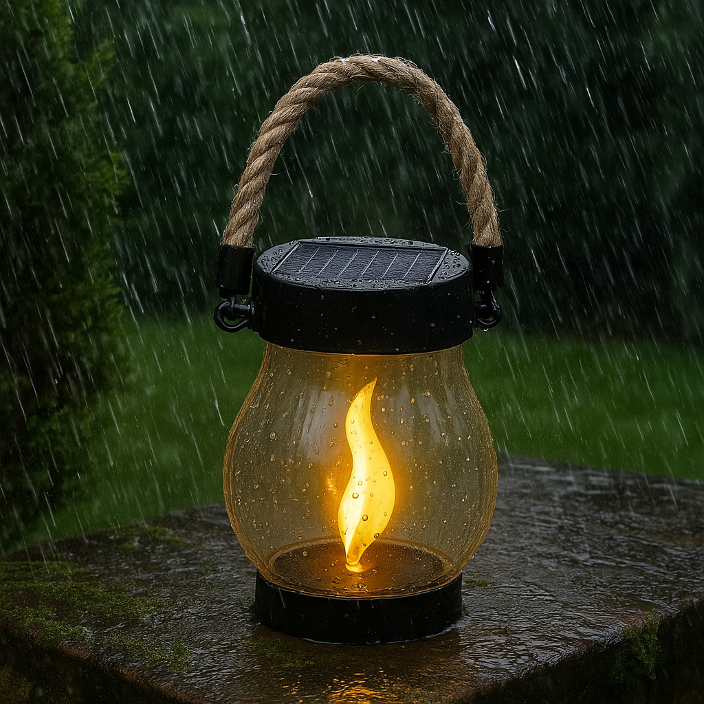 2. Automatic Night Illumination – As dusk falls, the lantern automatically turns on, providing a warm, flickering glow without any switches or wiring.