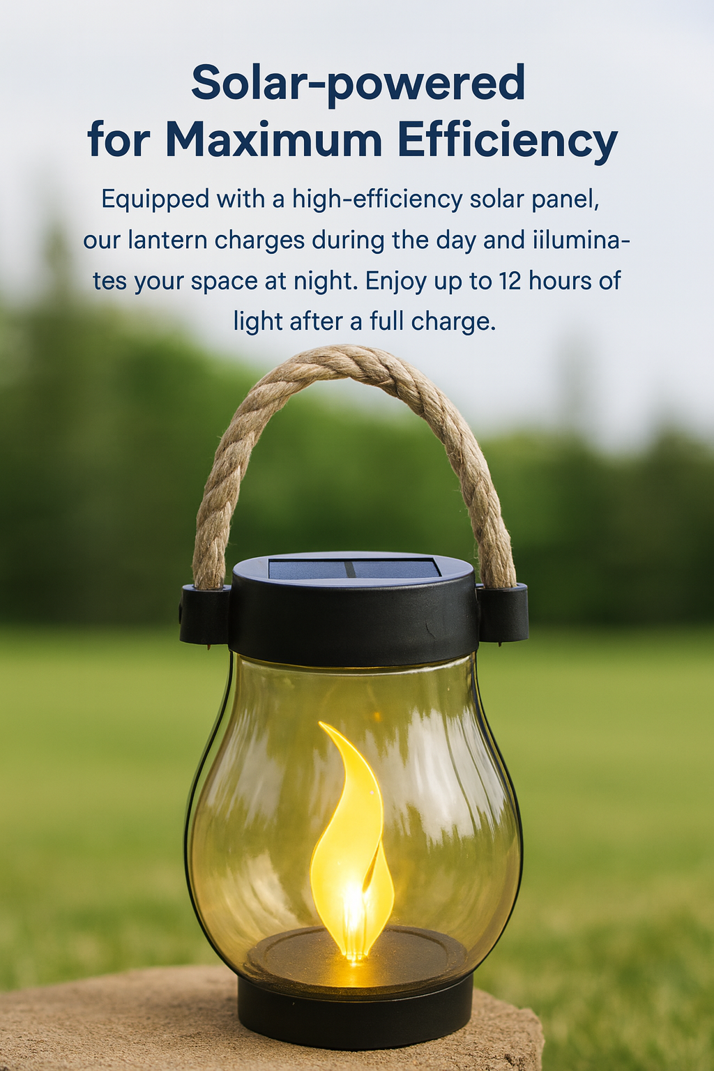 Equipped with a high-efficiency solar panel, our lantern charges during the day and illuminates your space at night. Enjoy up to 12 hours of light after a full charge.
