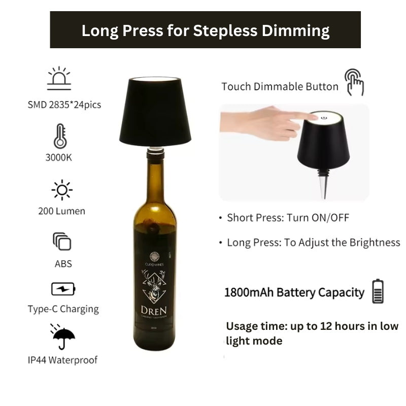 Unsere Flaschenlichtlampen ermöglichen grenzenlose Kreativität und verfügen über eine Touch-Steuerung, einschließlich der Möglichkeit, lange zu drücken.
